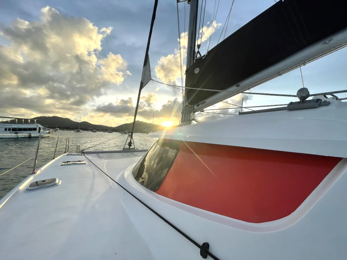 The vibrant hues of tropical sunsets ignite the sky above the Phi Phi Islands, creating a canvas that even Van Gogh would envy. Taking you through these stunning waters, the Bahia, a 46 ft Fountaine Pajot catamaran, is ready to glide effortlessly on the monsoon winds—ideal for your Thai sailing adventure.