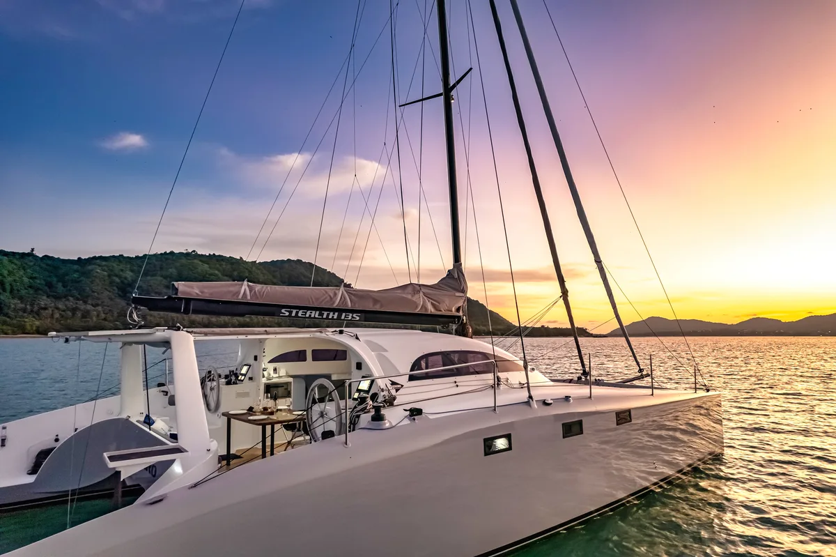 Hero เป็น 43ft Stealth - Asia กาตามารันs กาตามารันเรือใบ เรือยอทช์ประจำอยู่ที่ Phuket ประเทศไทย This yacht is a great choice for ค้างคืน cruises, catamaran charters, sunset cruises and romantic honeymoon cruises.